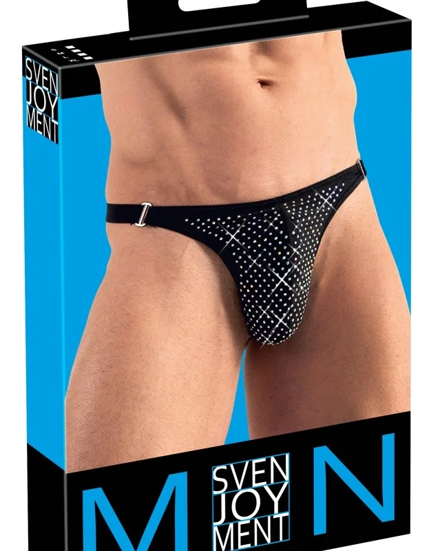 Discover the Svenjoyment Men’s Stretch String S – a striking, modern accessory designed for those who appreciate bold style and comfort. This black string model features an exclusive arrangement of radiant, multi-coloured rhinestones at the front, adding a refined touch of sparkle and contemporary elegance. Crafted to combine both aesthetics and practicality, the string boasts a highly elastic material blend, ensuring a snug yet flexible fit for all-day comfort.