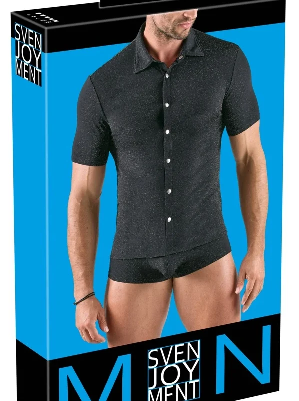Marškiniai yra pritaikyti trumpomis rankovėmis, išskirtine stovima apykakle ir praktiška smeigių eile priekyje, kad būtų lengva apsirengti. Nepriklausomai nuo to, ar jie dėvimi ypatingomis progomis, ar kaip drąsus kasdienės aprangos priedas, šie marškinėliai sujungia modernią estetiką ir funkcionalų dizainą.