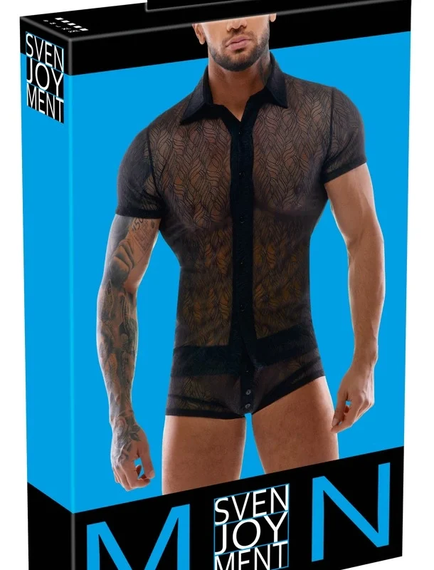 The Svenjoyment Transparent Lace Shirt in size M is crafted from a premium, fine stretch lace that delivers a sophisticated, contemporary look. Featuring a classic collar and a full-length front button placket, this shirt combines comfort and timeless design. The fitted cut and short sleeves highlight the tailored silhouette, making it an excellent choice for stylish occasions or as a unique addition to your wardrobe.