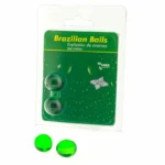 Discover the innovative Taloka Brazilian Balls Mint Intimate Gel Duo – a set of two uniquely formulated, oil-based gel capsules designed for relaxing and invigorating body massage. Each capsule, infused with a refreshing mint aroma, is crafted to enhance your personal care routine with a touch of novelty and sensory delight.