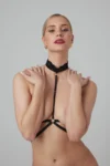 Discover the Viola Black Lace Bralette by Strappy – a fusion of modern style, comfort, and sophisticated detail. This harness-inspired bralette features a unique design that lets you wear it as an expressive accessory both over and under your clothing, making it a versatile addition to your wardrobe.