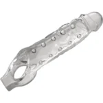 This extension system does not require batteries, pills, or additional devices, allowing for straightforward use. Simply apply a compatible water-based lubricant for optimal comfort and slide the sleeve over the desired area. Cleaning is simple—wash with warm water and mild soap, then allow to air dry.