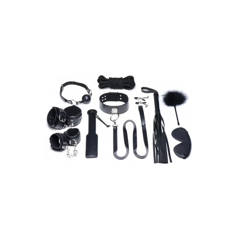 - Complete 10-piece collection: Includes a plush blindfold, breathable restraint ball, adjustable strap collar with leash, wrist and ankle cuffs, adjustable tension clamps, multi-use rope, ergonomic paddle, feather tickler, and classic flogger.
