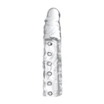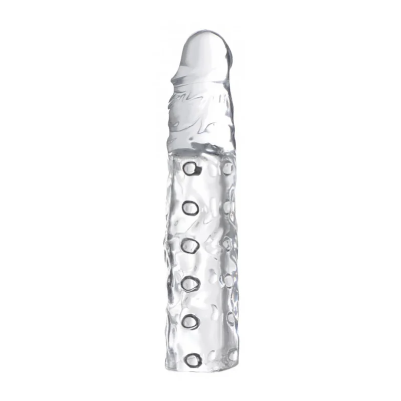 XR Brands Master Series Intimate Extension Sleeve 19 cm Transparent is a high-quality anatomical accessory designed to enhance comfort and functionality. Crafted from a firm yet flexible TPE material, this model offers a seamless fit and an ergonomic form for optimal adaptation. The transparent finish and pronounced textured surface provide a distinctive, modern look while supporting ease of use and hygiene.