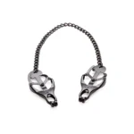 XR Brands Monarch Noir Adjustable Clamp System offers a modern approach to classic clamp design, combining a striking black finish with robust, reliable construction. Engineered for users who value both form and function, this model features a signature clover-style mechanism that ensures a secure hold, adapting automatically to the level of pressure applied to the connecting chain. Its durable build and adjustable tension make it a versatile addition to any collection, suitable for individual use or as part of partnered scenarios.