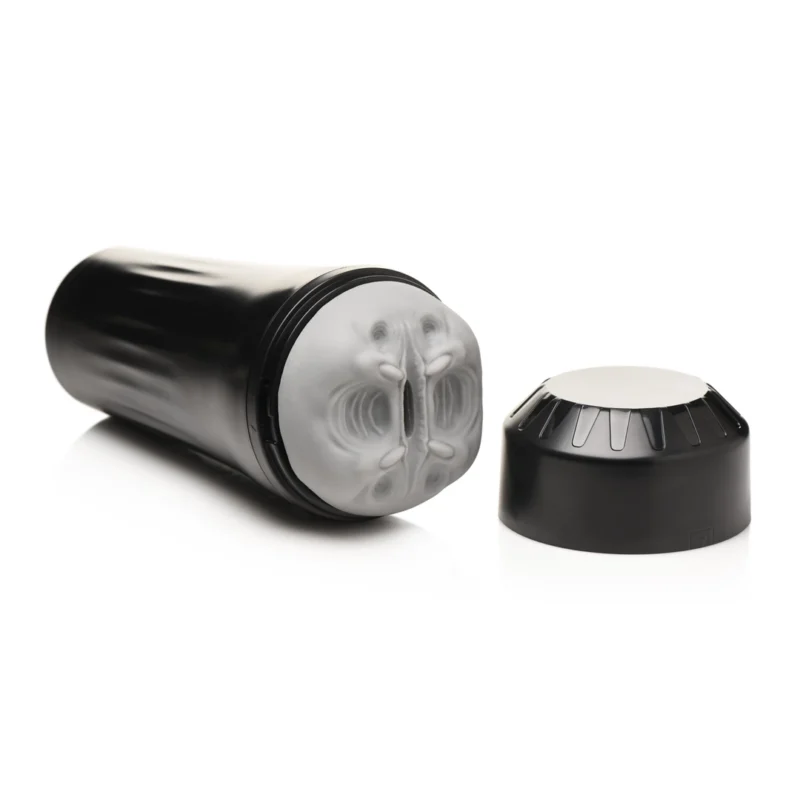 Inside, precisely arranged ribs, grooves, and nodules create a unique, multi-textured interior surface, engineered for varied tactile sensation and enhanced comfort. The product is equipped with an adjustable pressure and suction system, managed by a removable silicone plug at the base. By keeping the plug in place, you can increase the internal pressure and create a more snug environment. For a gentler experience, simply remove the plug to decrease the suction and allow for easy airflow.