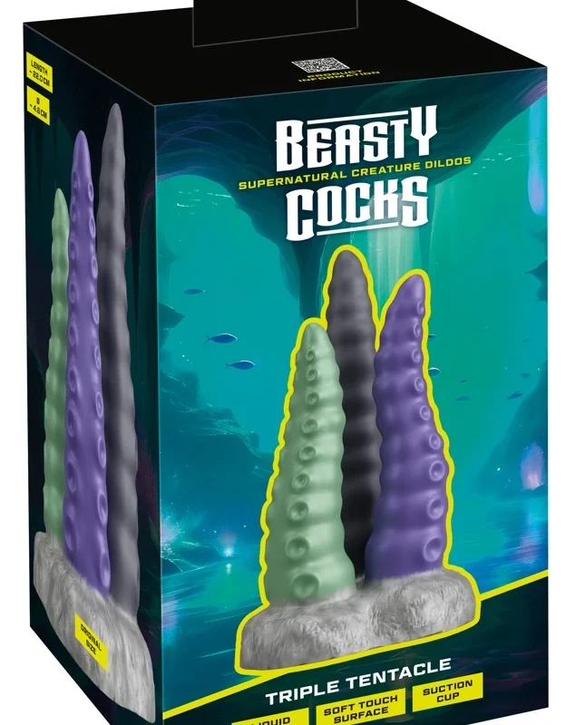 The Beasty Cocks Triple Tentacle comes in reversible, collector-style packaging, featuring both the product and a themed creature illustration. This makes it an excellent gift or addition to any collection, while ensuring discretion and style.