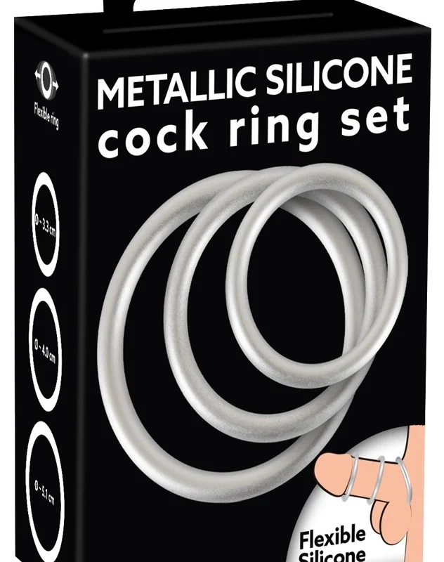 This premium set includes three anatomically shaped rings in an eye-catching metallic finish, combining the striking appearance of metal with the flexibility and safety of high-quality silicone. Designed for optimal durability and user comfort, these rings provide tailored support for various needs and preferences.